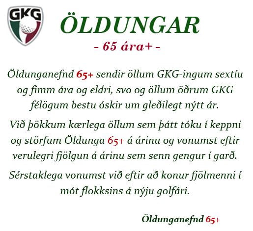Öldunganefnd 65+ sendir öllum GKG-ingum sextíu og fimm ára og eldri, svo og öllum öðrum GKG félögum bestu óskir um gleðilegt nýtt ár.