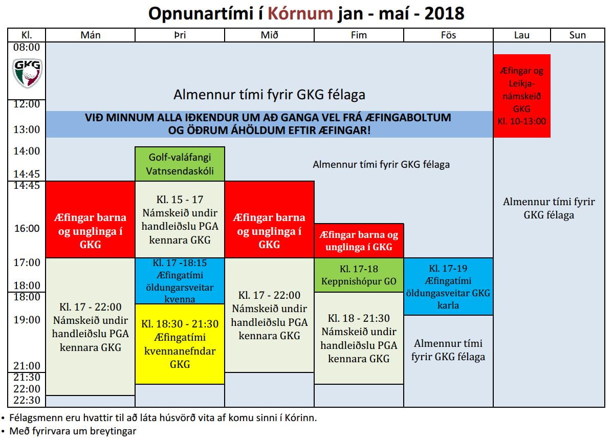 Viljum vekja athygli á opnunartímum okkar í æfingaaðstöðu GKG, þ.e. í Kórnum og Íþróttamiðstöðinni. Sjá myndrænt neðar í póstinum.