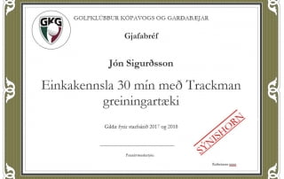 30 mín kennslutími með Trackman, kr. 7.500 per skipti