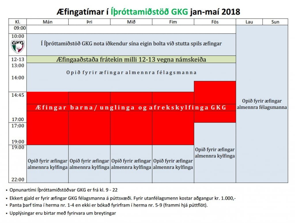 Viljum vekja athygli á opnunartímum okkar í æfingaaðstöðu GKG, þ.e. í Kórnum og Íþróttamiðstöðinni. Sjá myndrænt neðar í póstinum.