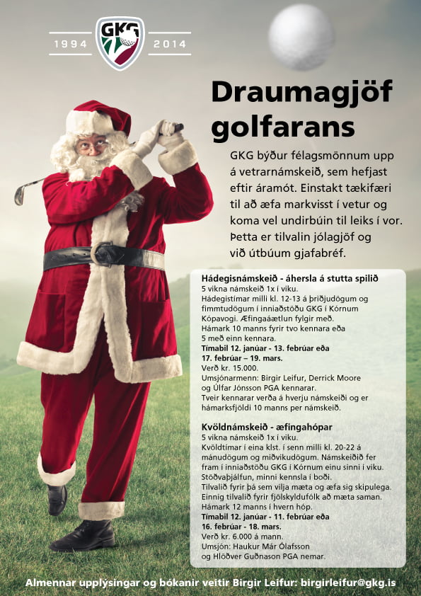 Langar þig að vera tilbúinn fyrir sumarið? Þá er svarið að æfa markvisst yfir veturinn. Við hjá GKG ætlum að bjóða félagsmönnum upp á skemmtileg námskeið sem hefjast eftir áramótin, um er að ræða stuttaspilsnámskeið í hádegi og hina vinsælu æfingahópa sem slógu í gegn síðasta vetur á kvöldin. Sjá nánari upplýsingar hér